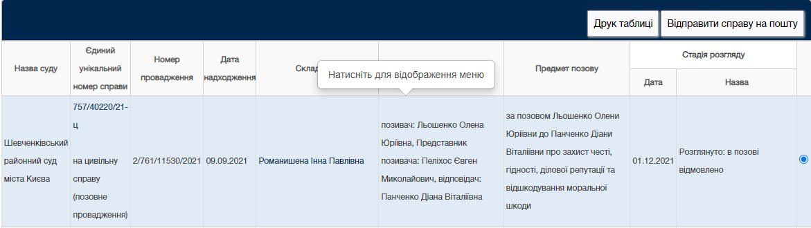 Отметим, что иск Льошенко касался поста Панченко за 20 июля 2021 года в Facebook о том, что Льошенко была остановлена за рулем в состоянии алкогольного опьянения и была оштрафована. После публикации этого поста Льошенко объявила, что идет в суд.