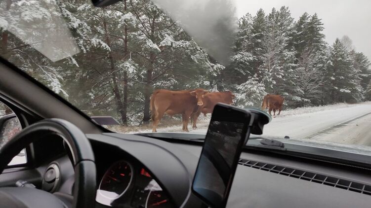 Периодически животных видели работники предприятий зоны отчуждения. А утром 6 декабря они путешествовали по автомобильной дороге в районе все того же Парышева. Как можно заметить из фотоснимков, смотрятся быки довольно прилично: не голодными и не измученными.