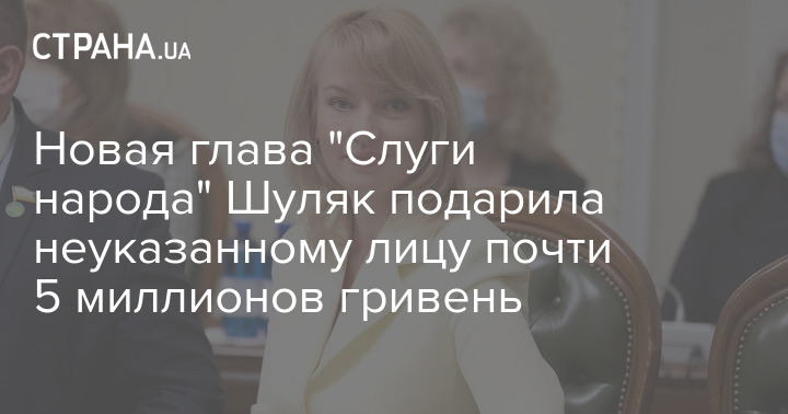 Заместитель  председателя депутатской фракции партии "Слуга народа" Елена Шуляк, которая недавно стала главой партии, подарила неизвестному лицу  четыре миллиона восемьсот тысяч гривень.