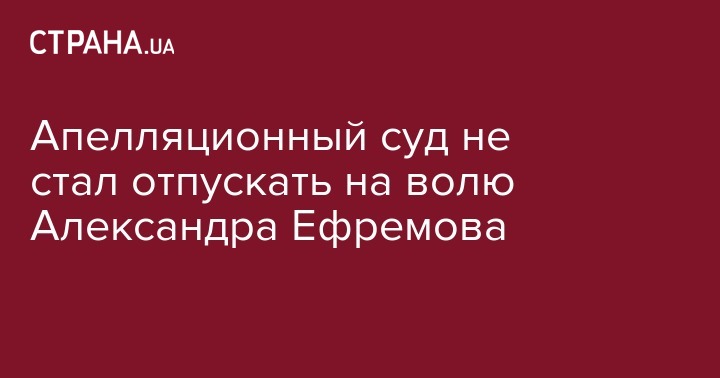 "Постановление следственного судьи ... о продлении содержания под стражей ... А.Ефремова оставить без изменений, а апелляционные жалобы ... без удовлетворения", - сказал судья. Таким образом, Александр Ефремов останется под арестом до 24 ноября. Такое решение 27 сентября было принято в Печерском районном суде Киева.