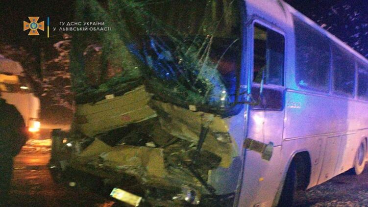 Во Львовской области в результате столкновение автобуса и грузовика пострадали 7 человек. Фото: ГСЧС