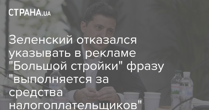 Зеленский отказался указывать в рекламе "Большой стройки" фразу "выполняется за средства налогоплательщиков"