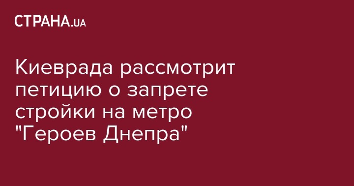 По состоянию на 19 октября электронная петиция "Немедленно прекратить строительство ТРЦ над станцией метро "Героев Днепра" набрала более 10 тысяч голосов и принята к рассмотрению Киеврадой. Об этом сообщает пресс-служба горсовета.