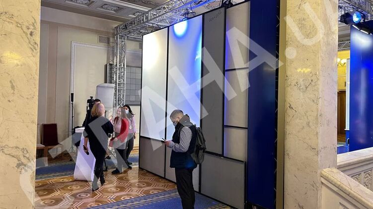 Студию канала отгородили ширмой от посторонних глаз. Теперь это полноценная изолированная студия внутри парламентских помещений.