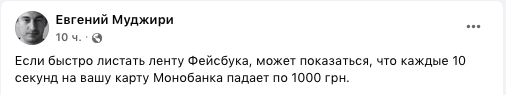 "Если быстро листать ленту Фейсбука, может показаться, что каждые 10 секунд на вашу карту Монобанка падает по 1000 грн".