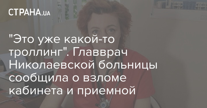 "Это уже какой-то троллинг". Главврач Николаевской больницы сообщила о взломе кабинета и приемной