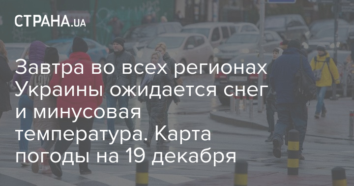 Завтра во всех регионах Украины ожидается снег и минусовая температура. Карта погоды на 19 декабря