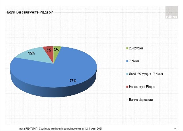 Но идти этот процесс может годами. А на сегодня главный ограничитель перехода на празднование в декабре - это миряне. По данным опроса группы "Рейтинг", который провели в прошлом январе, 77% респондентов заявили, что отмечают Рождество только 7 января.