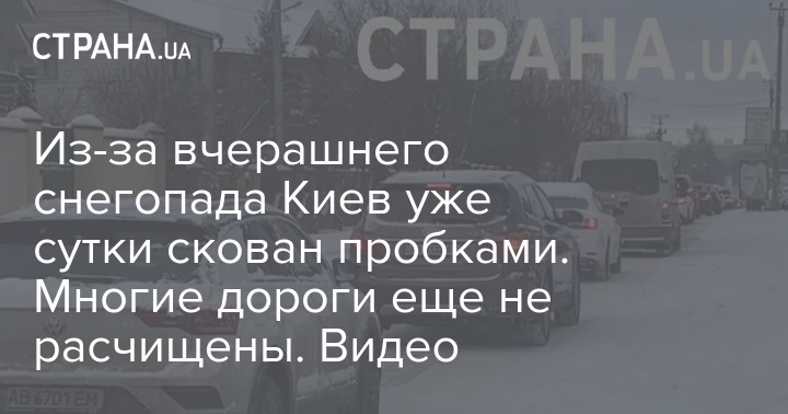 Из-за вчерашнего снегопада Киев уже сутки скован пробками. Многие дороги еще не расчищены. Видео