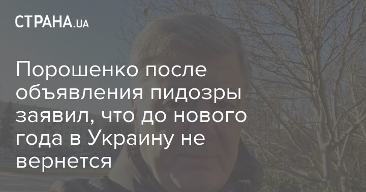 Порошенко после объявления пидозры заявил, что до нового года в Украину не вернется