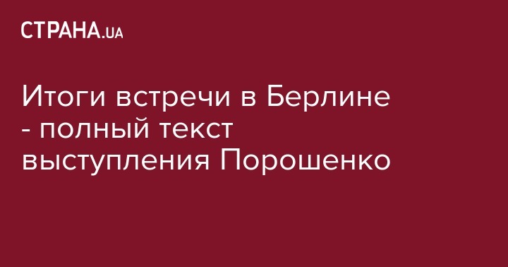 В Берлине завершилась встреча "нормандской четверки": глав Украины, России, Германии и Франции. После переговоров Петр Порошенко на брифинге рассказал о чем удалось договориться в Берлине и ответил на вопросы журналистов. Полный текст с пресс-конференции обнародовала "Лига.net".