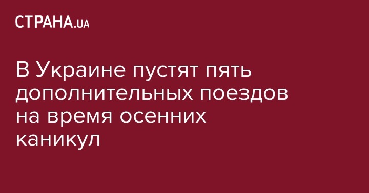 В связи с повышенным спросом на поездки во время осенних каникул, особенно в западном направлении, "Укрзализныця" пустит 5 дополнительных поездов на этот период. Об этом сообщает пресс-служба предприятия.