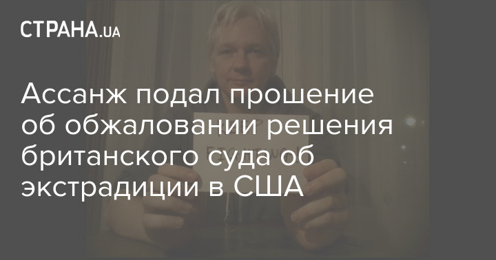 Основатель WikiLeaks Джулиан Ассанж подал прошение об обжаловании решения британского суда, который по становил экстрадировать его в США.