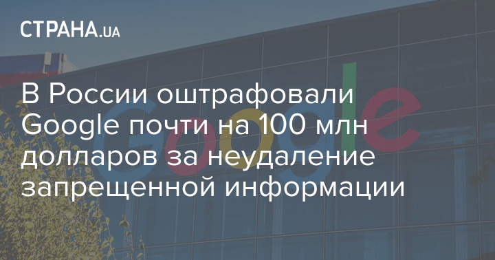 Таганский районный суд Москвы оштрафовал компанию Google на 7,2 млрд рублей (2,6 млрд гривен; 98, 3 млн долларов) за систематическое неудаление запрещенной в РФ информации.