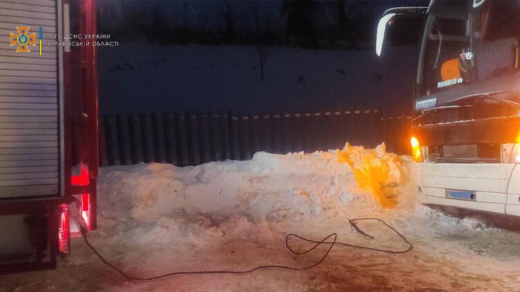 Вечером в субботу, 25 декабря, во Львовской области спасателям пришлось доставать пассажирский автобус из сугробов.
