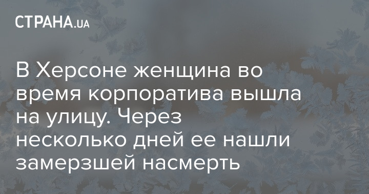 В Херсоне во время корпоратива женщина вышла из ресторана без верхней одежды и исчезла. Спустя несколько дней ее нашли мертвой, вероятно она задремала на морозе и замерзла насмерть.