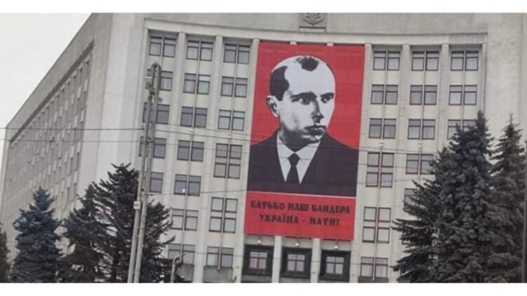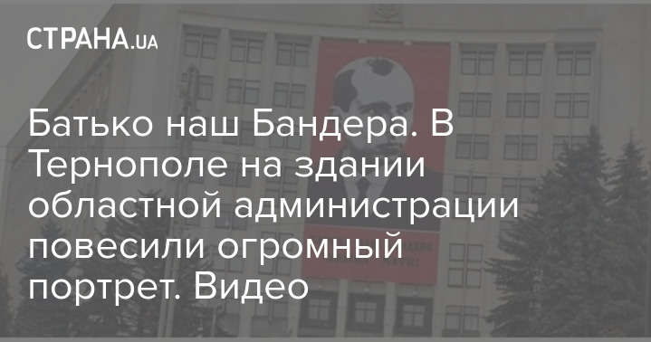 В Тернополе, где полиция круглосуточно охраняет памятник Бандере, который недавно облили краской и забросали яйцами, на фасаде областной государственной администрации разместили гигантский баннер с изображением идейного и духовного лидера украинских националистов.