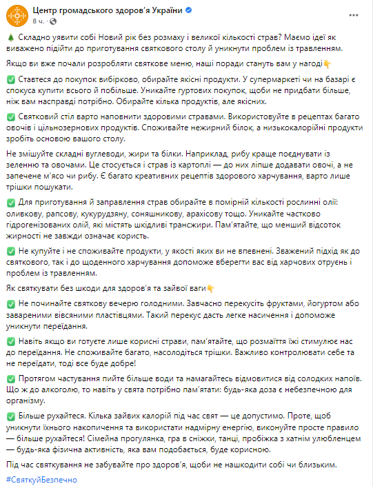 Об этом сообщает в Facebook ЦОЗ при Минздраве Украины во вторник, 28 декабря.