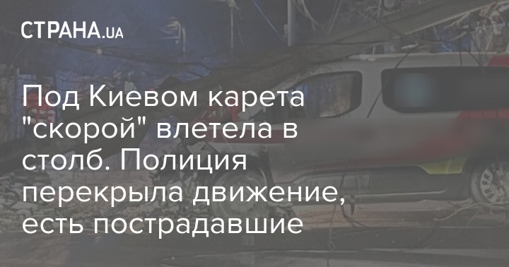 В ночь на среду, 29 декабря, в селе Софиевская Борщаговка Киевской области карета скорой помощи врезалась в электроопору и повалила на себя столб. В результате аварии пострадал водитель и медик, который сидел на переднем сиденье.