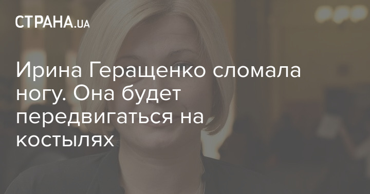 Депутат Верховной Рады Украины от фракции "Европейская солидарность" Ирина Геращенко сломала ногу и следующие восемь недель ей предстоит передвигаться с помощью костылей.