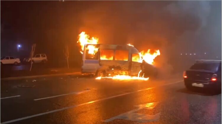 В Казахстане, где президент Токаев ввел чрезвычайное положение, протестующие громят и поджигают полицейские машины, о чем свидетельствует соответствующее видео.