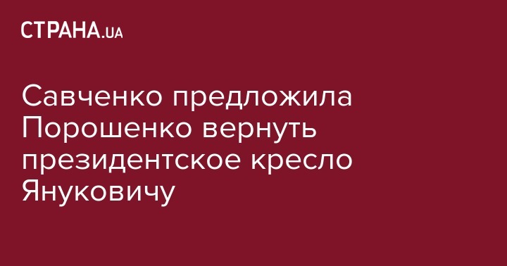 Народный депутат Надежда Савченко ("Батькивщина") предложила президенту Петру Порошенко вернуть кресло президента бывшему президенту Виктору Януковичу. Об этом нардеп заявила во время программы "Право на власть" на канале ТСН.