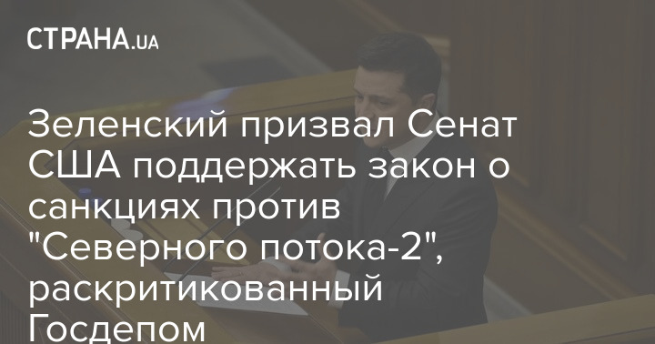 Зеленский призвал Сенат США поддержать закон о санкциях против "Северного потока-2", раскритикованный Госдепом