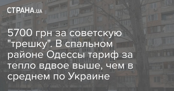 5700 грн за советскую "трешку". В спальном районе Одессы тариф за тепло вдвое выше, чем в среднем по Украине