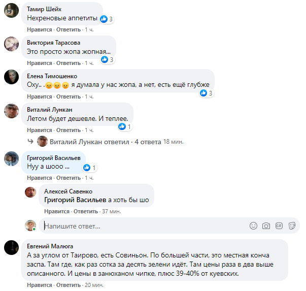 "Нехреновые аппетиты", - пишет один из пользователей. "Я думала у нас ж@па, а нет, есть ещё глубже", - отвечает второй. "Летом будет дешевле. И теплее", - утешает третий.