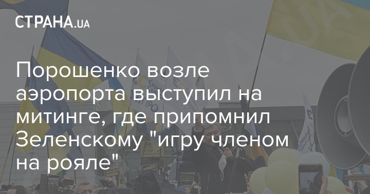 В ходе своей речи Порошенко клеймит власть, а толпа поддакивает "Ганьба". Порошенко упрекает президента Украины Владимира Зеленского в том, что тот "играл на рояле", изображая, что это "и есть культура его страны".