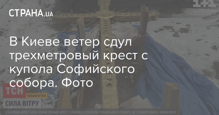 В Киеве ветер сдул трехметровый крест с купола Софийского собора. Фото