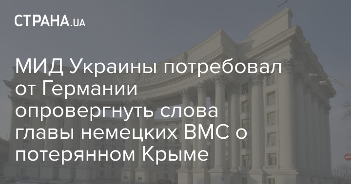 Министерство иностранных дел Украины потребовало публичного опровержения правительством ФРГ высказываний командующего Военно-Морскими силами Германии Кая-Ахима Шенбаха, который заявил, что Украине никогда не удастся вернуть Крым
