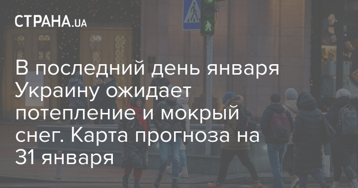 31 января в Украине ожидается потепление. В южной части без существенных осадков, ночью ожидается мокрый снег. Температура ночью и днем от 3 градусов мороза до 2 градусов тепла, на юге днем до 6 градусов тепла