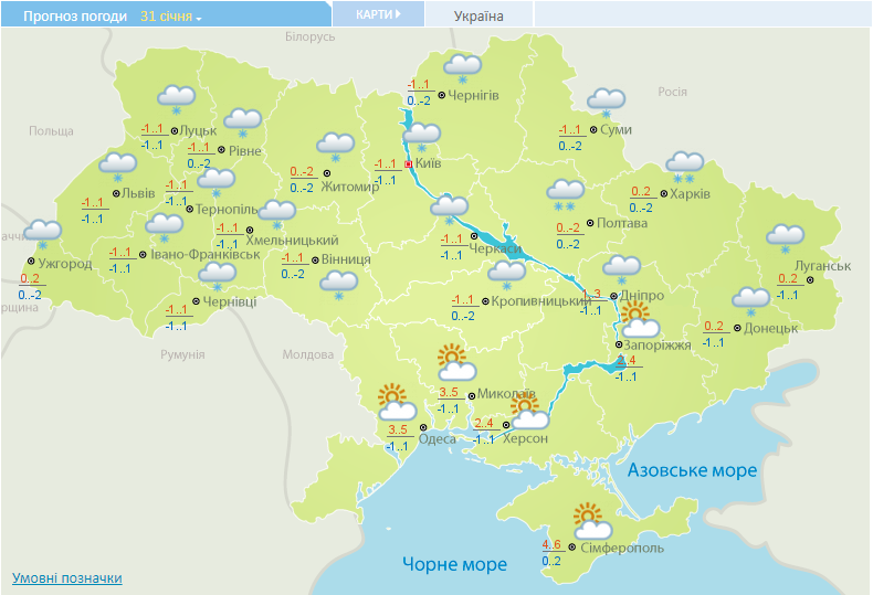 В понедельник, 31 января, погода в Украине будет преимущественно теплой. Синоптики прогнозируют, что в этот день сильные осадки отступят.