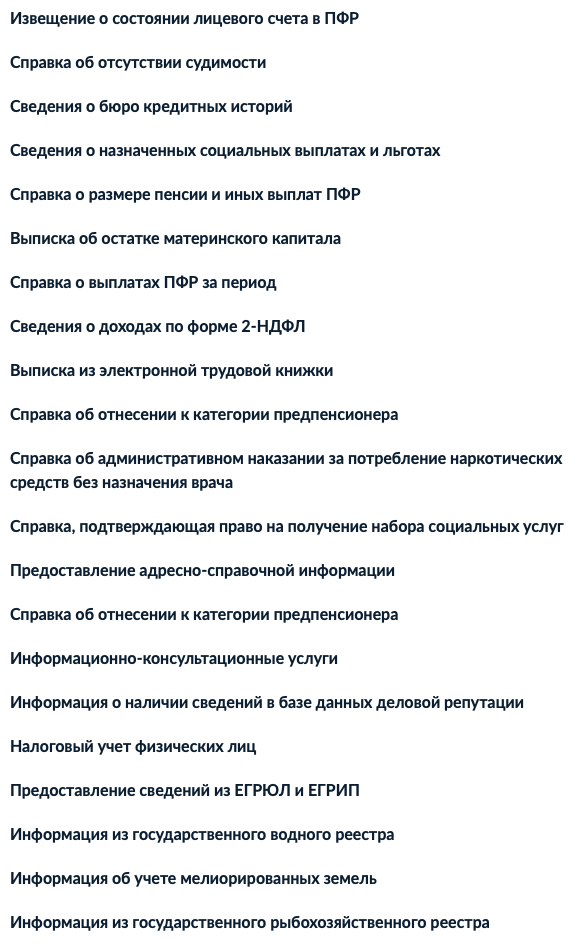 Перечислить все опции, доступные на "Госуслугах", сложно, поскольку их более 500. Ниже мы публикуем скриншоты наиболее значимых. Среди них: