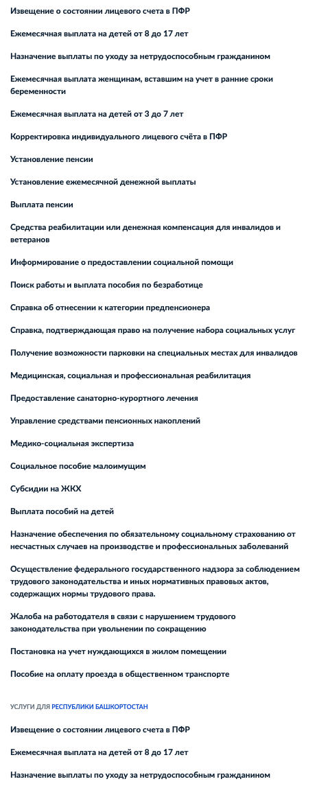 Важный момент - оформление соцальных льгот, выплат и разного рода пособий. В "Госуслугах" представлены они все.