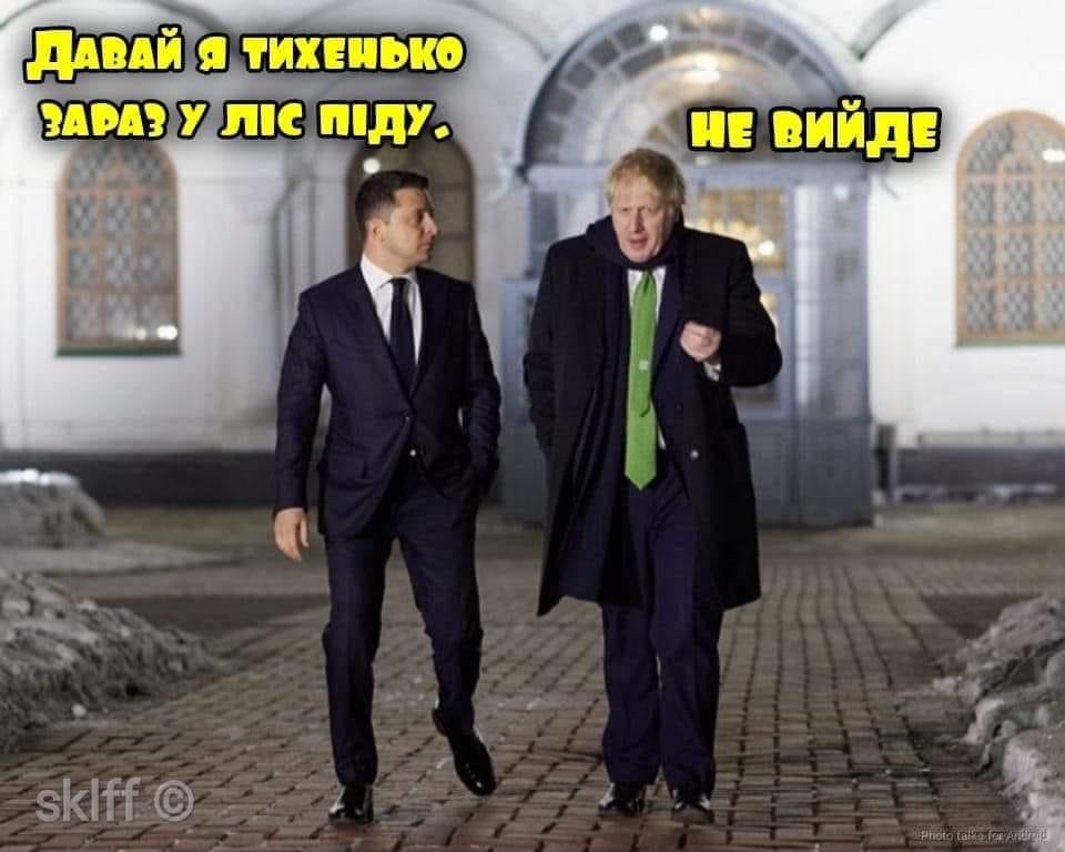Украинцы в соцсетях сразу припомнили Зе квартиру в Лондоне и офшоры и запостили мемы о том, как Зе просит у Джонсона "тихонечко в лес уйти" (по мотивам скандала с депутатом Трухиным).