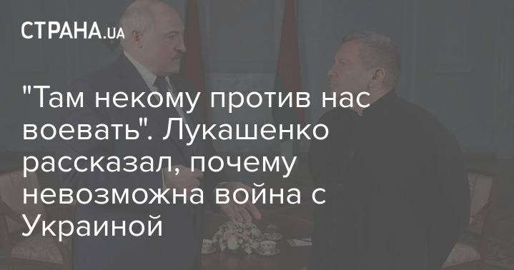 "Украина никогда с нами не будет воевать. Эта война продлится ну максимум три-четыре дня. Там некому будет против нас воевать. Те, которые показывают с этими автоматами их показывают с деревянными, как они тренируются. Так мы сейчас выйдем с тобой в соседний зал и снимем на мобильный телефон тренировку эту и покажем", - сказал Лукашенко.