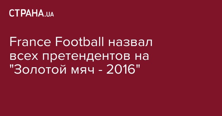 Французский журнал France Football обнародовал полный список футболистов, которые будут бороться за "Золотой мяч-2016". Эта награда вручается лучшему футболисту мира. Об этом сообщается на официальном сайте журнала.
