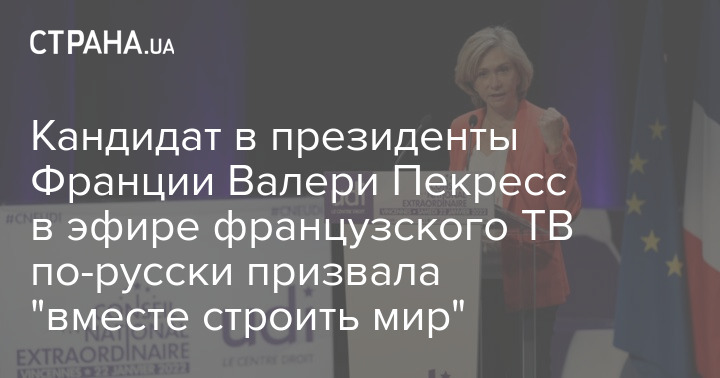 Кандидат в президенты Франции Валери Пекресс в эфире французского телеканала France 5 по-русски призвала "вместе строить мир".
