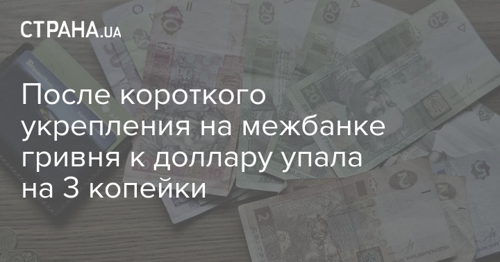 После короткого укрепления на межбанке гривня к доллару упала на 3 копейки