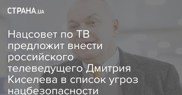 Национальный совет по вопросам телевидения и радиовещания предложил внести гендиректора информагентства "Россия сегодня" и ведущего "Вестей недели" на "России 1" Дмитрия Киселева в список лиц, создающих угрозу нацбезопасности.