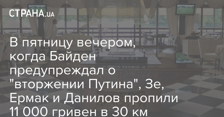 По информации источников "Страны", вчера после заседания СНБО президент Владимир Зеленский, глава ОП Андрей Ермак, секретарь СНБО Алексей Данилов и губернатор Харьковской области Олег Синегубов праздновали санкции против телеканала "Наш" в элитном гольф-клубе "Superior Golf & Spa Resort", где и остались ночевать.