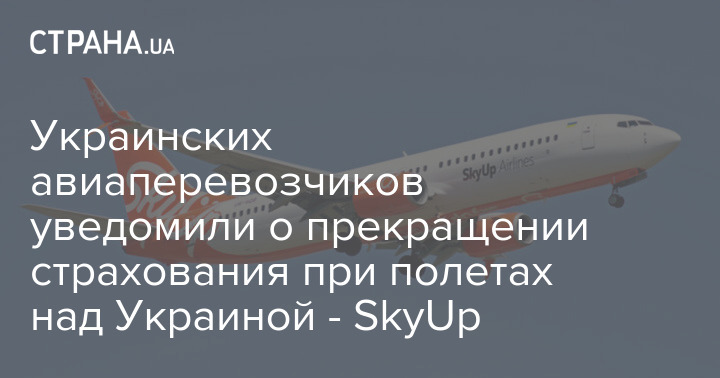 Авиакомпания SkyUp сообщила, что страховщики уведомили украинских авиаперевозчиков о прекращении страхования при полетах над Украиной. Это объяснили угрозой боевых действий.