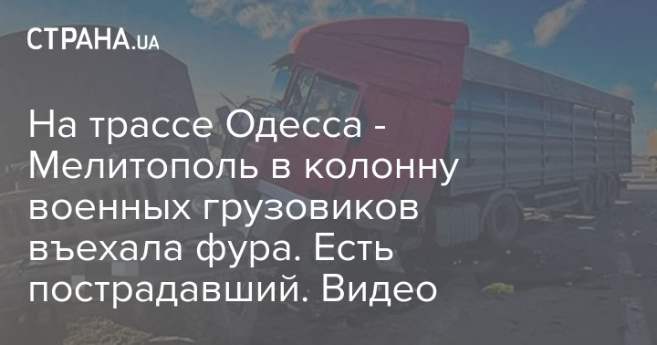 На трассе Одесса - Мелитополь в колонну военных грузовиков въехала фура. Есть пострадавший. Видео