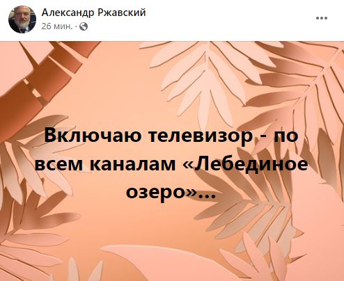 "Включаю телевизор - по всем каналам "Лебединое озеро"…" - написал экс-депутат Александр Ржавский с намеком на "марафон единения", который сегодня показывали везде.