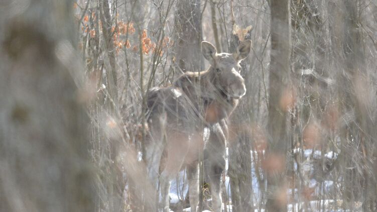 Сотрудники Чернобыльского радиационно-экологического биосферного заповедника в зоне отчуждения ЧАЭС поделились фотографиями, на которых прямо в объектив фотокамеры смотрит лось.