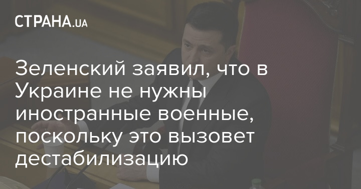Президент Украины Владимир Зеленский считает, что размещение в нашей стране иностранных военнослужащих приведет к дестабилизации ситуации во всем мире.
