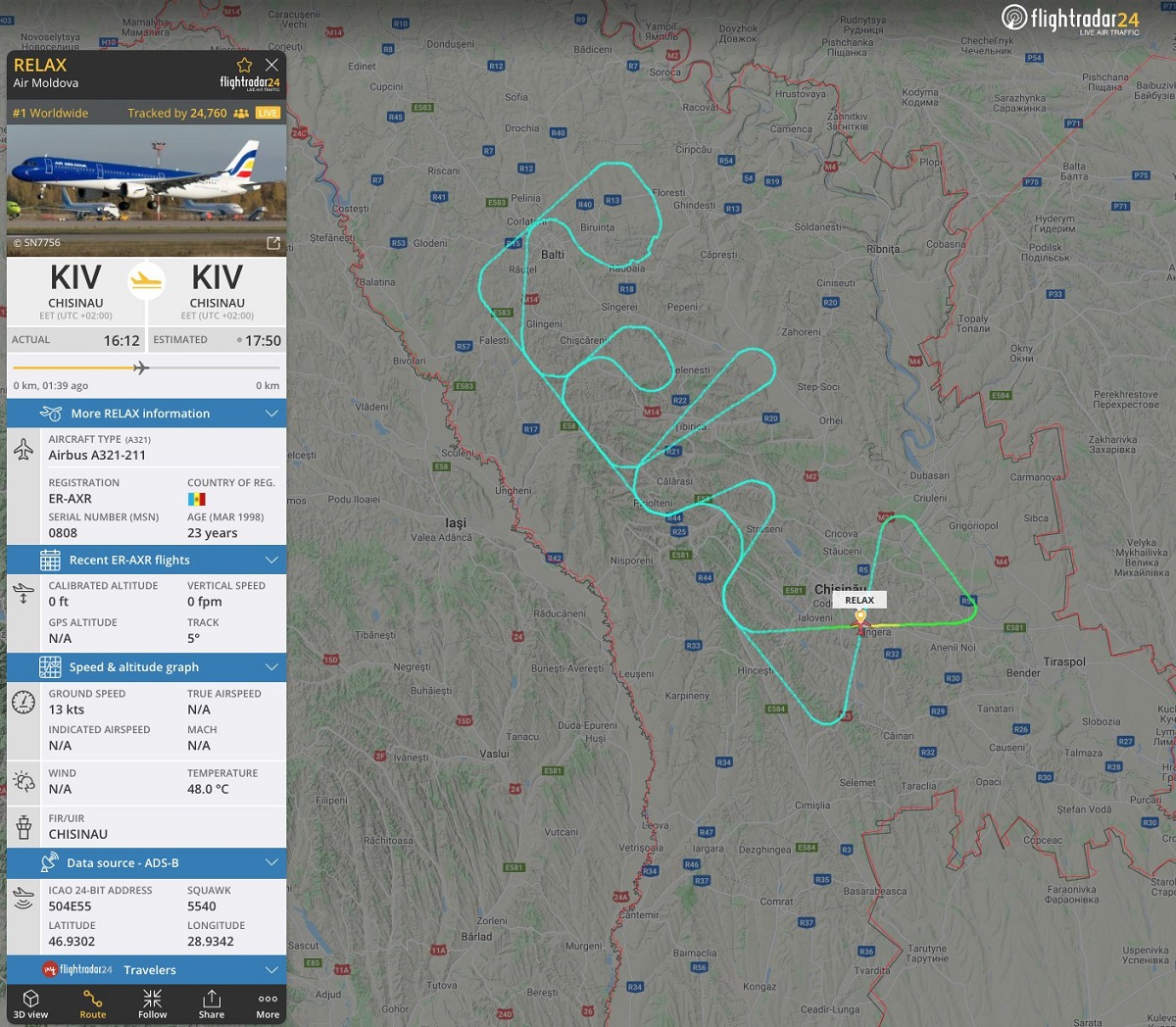 В Молдове пассажирский авиалайнер Airbus A321 траекторией своего полета написал в небе возле украинских границ слово Relax (что в переводе на русский - "расслабьтесь").