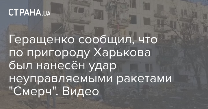 Геращенко сообщил, что по пригороду Харькова был нанесён удар неуправляемыми ракетами "Смерч". Видео